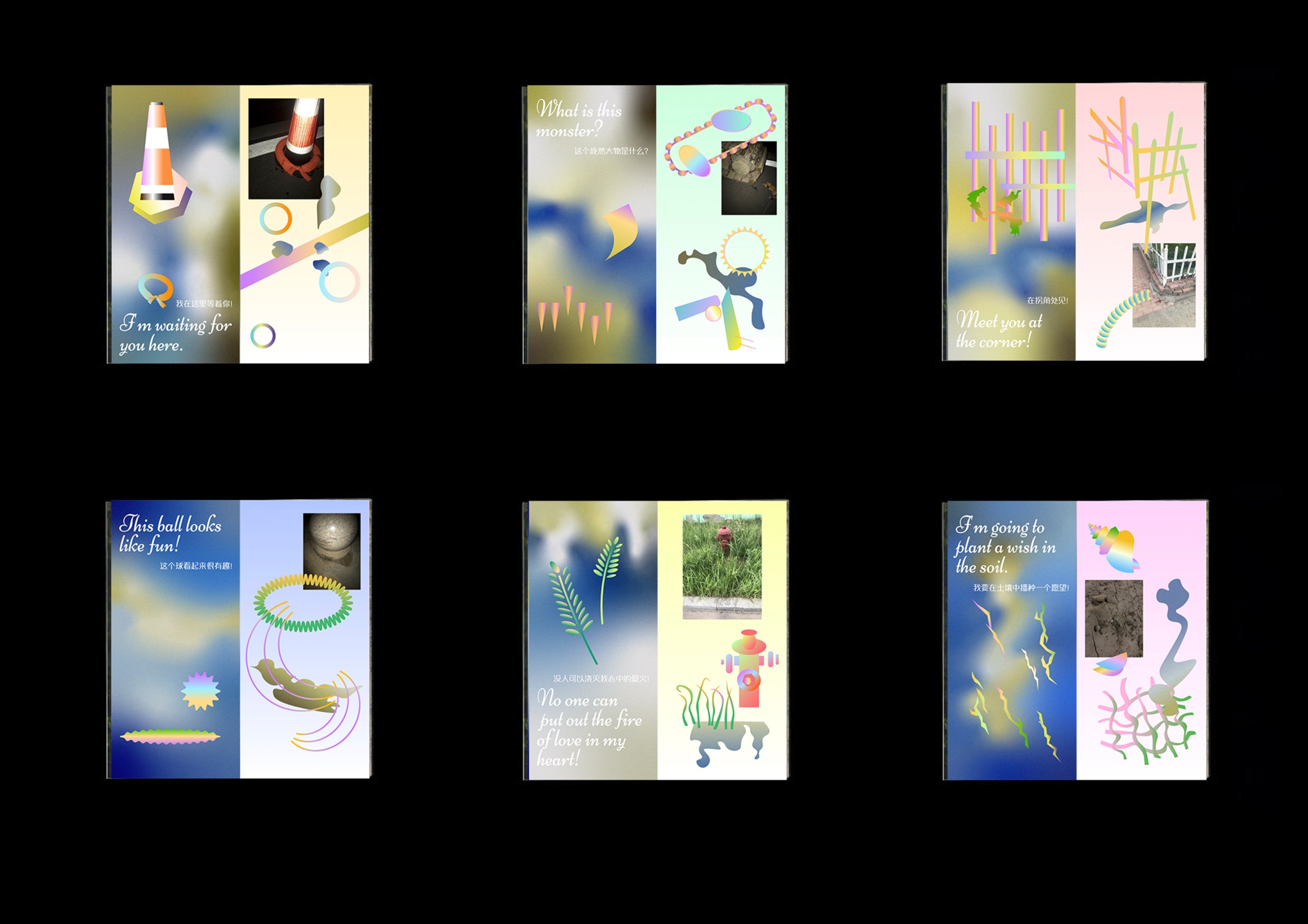 This book is inspired by my dog. It is intended to explore the contrast between the virtual communication state of people and the physical communication state of dogs under the pandemic situation, and it also reflects the sensory contrast and the similarity of information transmission between people and dogs.